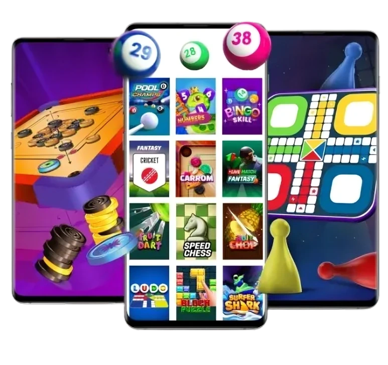 Play over 60 games without downloading separate apps. Card games like Gin Rummy, Poker, Call Break, and Winpatti. Casual games like Ludo, Snakes & Ladders, and Carrom. Fantasy sports for Cricket, Football, and Basketball. Puzzle games, action games, and brain teasers. Everything loads directly from the main app.
